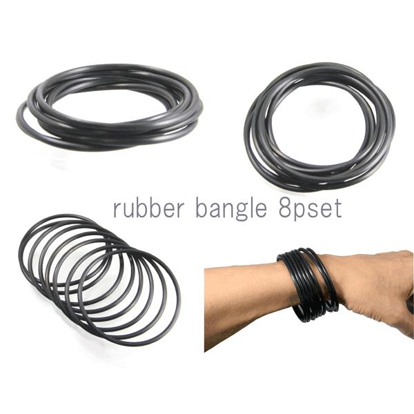 期間限定 ラバー ゴム ブレスレット黒ブラック8p つけっぱなし メンズ レディース極細 輪バングル メール便可